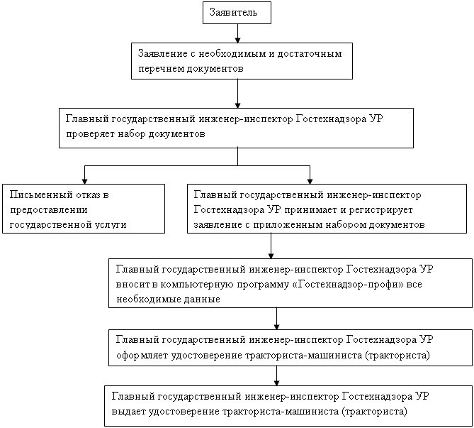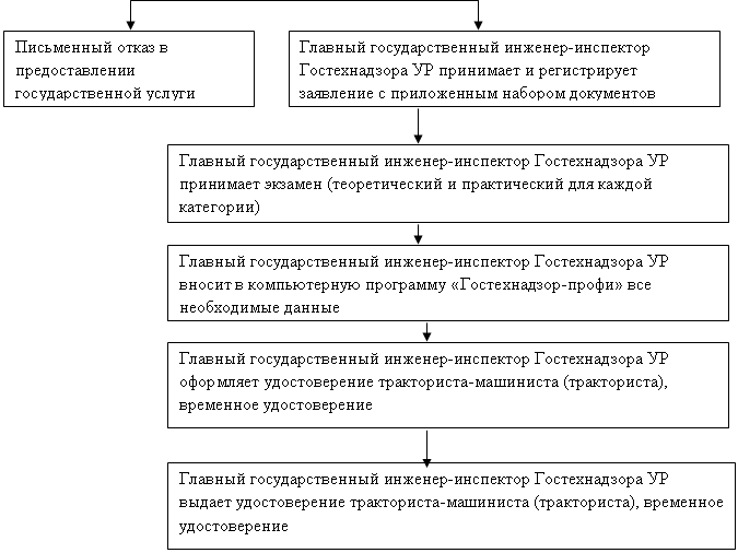 Блок-схема по предоставлению государственной услуги, касающейся выдачи удостоверения тракториста-машиниста (тракториста), временного удостоверения