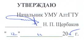 Федеральное государственное бюджетное образовательное учреждение высшего образования «Алтайский государственный технический университет