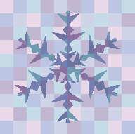 Ø окунает подушечку среднего пальца сначала в белую краску, затем слегка - в синюю и ставит двуцветный отпечаток; дети закрепляют прием - ставят двуцветный отпечаток средним пальчиком;