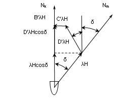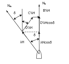 Рассмотрим теоретическое обоснование способа Колонга. Прежде всего отметим одно ограничивающее условие: силы АλН и ЕλН принимаем равными нулю, что вполне допустимо по отношению к магнитному компасу, установленному на верхнем мостике в диаметральной плоскости судна.