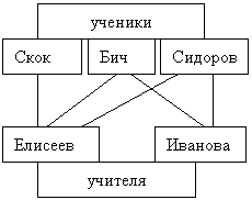 2) Один ко многим - одному экземпляру информационного объекта А соответствует несколько экземпляров информационного объекта В. А<->>В. Пример: класс <->> ученик. В одном классе несколько учеников. Каждый ученик учится только в одном классе.