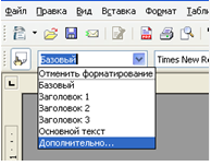 Для изменения любого из стилей следует в списке стилей выбрать пункт «Дополнительно» (см. рис. 1).