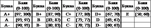 Таблица соответствия «буквенных» оценок и балльной шкалы 0–100.