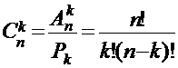 Определение 3: Неупорядоченные наборы, состоящие из k элементов, взятых из данных п элементов, называются сочетаниями из n элементов по k.