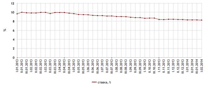 Рис.2. Динамика изменения максимальной процентной ставки за выбранный период (по данным Банка России)