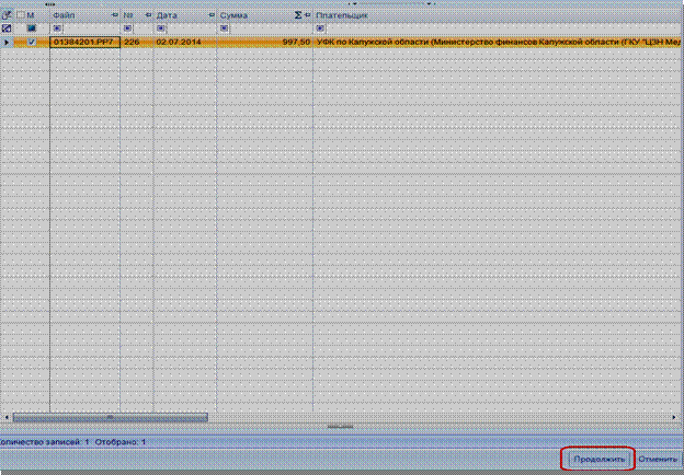 После нажатия кнопки «Продолжить» Программа начинает обработку файла и прием его согласно контролям.