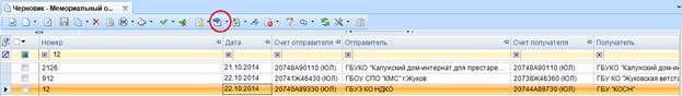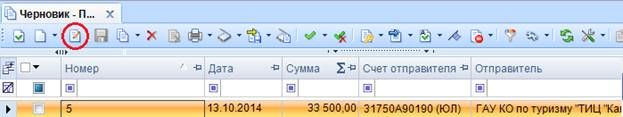 Для редактирования необходимо выделить документ «Черновик - Мемориальный ордер», подлежащий редактированию, щелчком мыши, в списке он будет оранжевого цвета, после чего нажать кнопку «Просмотр первичного образа» ![]()