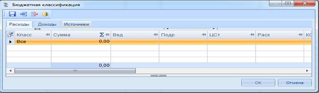 После нажатия этой кнопки откроется окно «Бюджетная классификация»:
