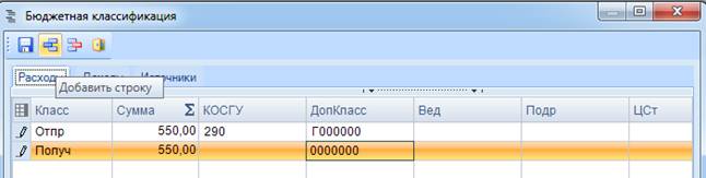 Что бы выбрать классификацию КОСГУ, КОД Доходов или Доп. Класс, надо или внести ее в ручную и нажать клавишу Enter, или выбрать из списка, вызвать который можно двойным щелчком левой клавиши мышки по полю в таблице или одинарным щелчком по специальному значку в поле в виде лупы ![]()