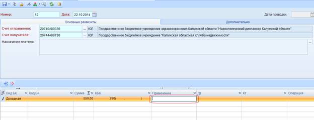 Важно! заполняется только текстовая часть, бюджетная классификация и номер лицевого счета будут заполнены Программой автоматически из заполненных ранее полей «Бюджетная классификация» и «Счет отправителя» («Счет получателя»).