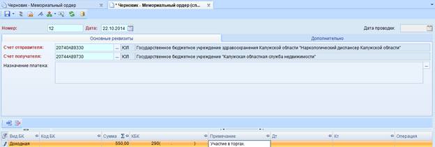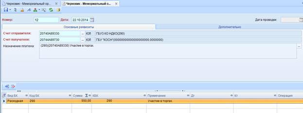 Документ «Мемориальный ордер» не передается в банк и является внутренним документом Министерства финансов области, посредством которого осуществляются расчеты между государственными бюджетными / автономными учреждениями Калужской области.
