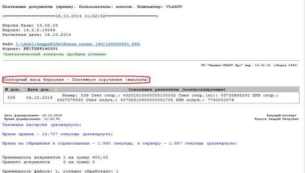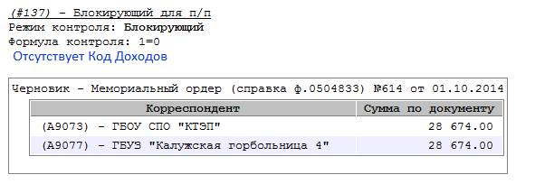 Данный контроль общий для всех документов «Платежное поручений», автоматически проверяет загружаемые в базу документы на соответствие банковским требованиям, требованиям федерального казначейства или налоговых органов.