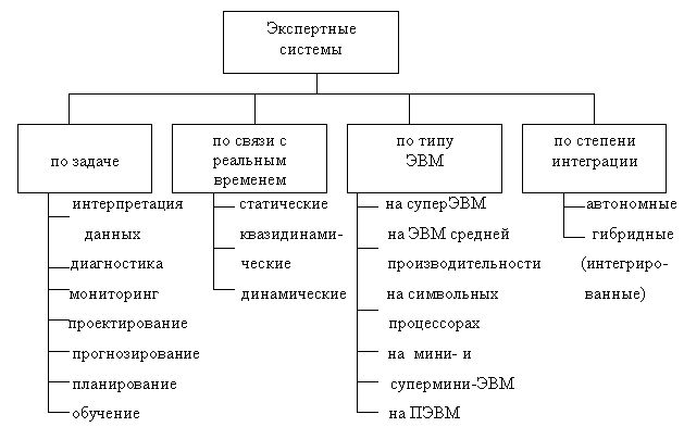 Класс "экспертные системы" сегодня объединяет несколько тысяч различных программных комплексов, которые можно классифицировать по различным критериям. Полезными могут оказаться следующие классификации
