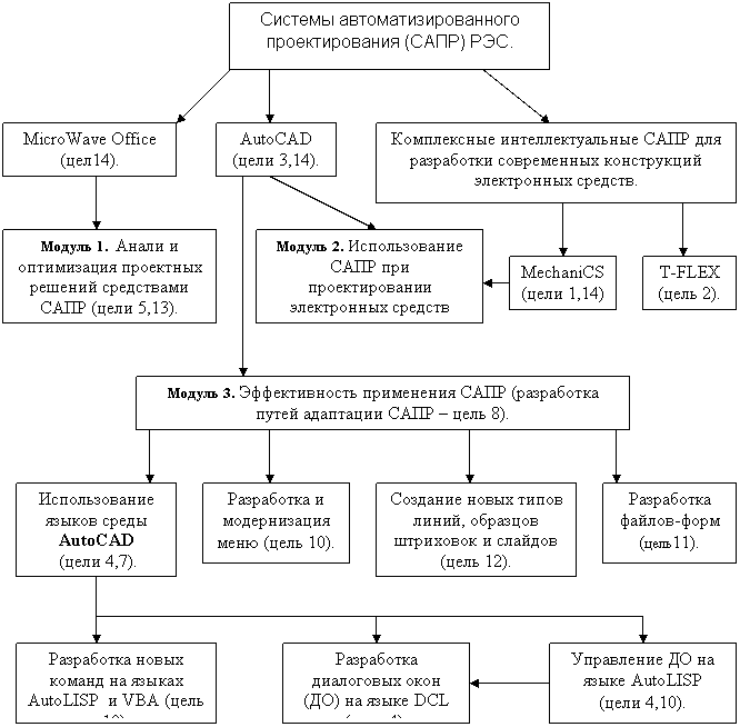 Главная цель | Обеспечение базы инженерной подготовки в области информационных технологий проектирования радиоэлектронных средств и в том числе в средствах адаптации (специализации) САПР применительно к решаемым пользователем задачам с целью повышения эффективности использования САПР. |