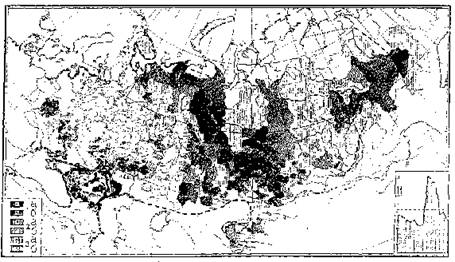 Так, в 1959–1961 гг. только в Новосибирской и Омской областях авиахимическими методами, с внесением до 5 кг/га чистого препарата, было обработано 155, 5 тыс. га болот с высокой плотностью грызунов. Эти же методы были использованы затем в Белоруссии и ряде других регионов во время вспышек численности водяной полевки (Абашкин и др., 1971; Фолитарек, 1971). В то же время малый подорлик (Aquila pomarina), гнездовой и миграционный ареалы которого лежат преимущественно за пределами районов основных дератизационных работ (рис. 7), пострадал значительно слабее и в последнее время уже начал восстанавливать свою численность и расселяться на восток, замещая исчезнувшего большого подорлика (Гришанов, 1994; Галушин, 1995; Белик, Афанасьев, в печати).