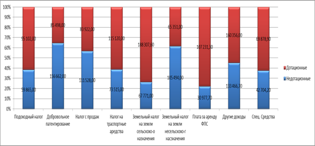 Представленный перечень доходов показывает, что 100% в местный бюджет поступают доходы, которые имеют пределы поступлений, в зависимости от площади земель, количества автотранспорта, коммерческого имущества (земельный налог, налог на имущество, плата за аренду земель), а также налоги, которые не играют существенной роли в структуре местных бюджетов сельских органов МСУ – налоги на основе специальных режимов.