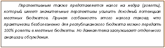 Все другие источники за исключением подоходного налога и налога на недра (роялти) максимально 100% поступают в местный бюджет, поэтому не могут служить аргументом для усиления доходного потенциала. Рассмотрим оставшиеся 2 общегосударственных налога и их доли расщепления.