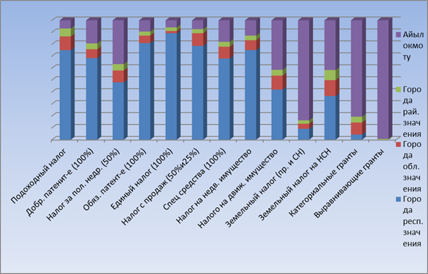 Анализ показывает, что доля подоходного налога в местных бюджетах айылных аймаков по сравнению с другими группами местных бюджетов составляет всего 6,8%.