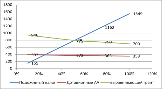 Таким образом, можно считать, что манипуляции с долями расщепления подоходного налога в пользу местных бюджетов айылных аймаков с одной стороны в значительной степени повлияют на увеличение доходного потенциала местных бюджетов, с другой стороны сводят к минимуму риски негативного воздействия на республиканский бюджет.