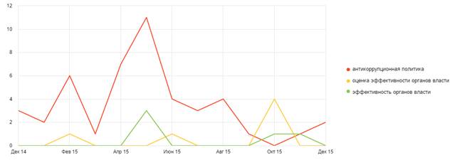 Рисунок 9 - Динамика роста запросов по теме «Эффективность органов власти» в течение всего периода продвижения