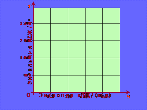 Основной расчётной диаграммой для водяного пара является I-S диаграмма (рискнок1), по оси ординат которой откладываются значения энтальпии, а по оси абсции - значение энтропии.