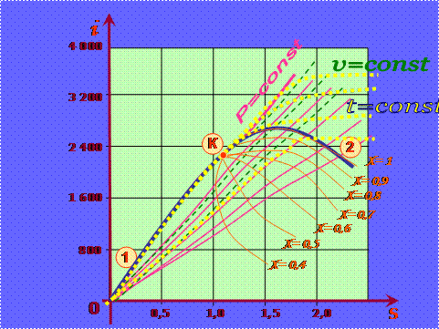 Кроме того в области влажного пара наносятся линии постоянной сухости пара х=соnst.