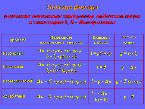 1. по заданным параметрам пара, учитывая характер процесса, на I-S диаграмме находят начальные и конечные точки рассматриваемого процесса и определяют недостающие параметры в начале и конце процесса.