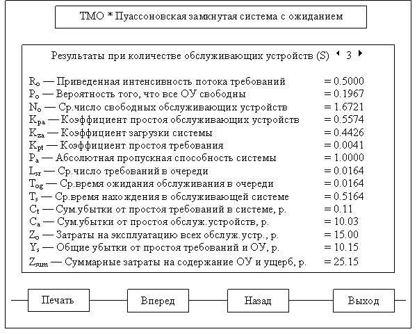 Рис. 3. . Окно с рассчитанными результатами для замкнутой системы с ожиданием