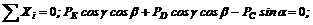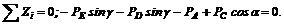 4. Расположим систему координатных осей, как показано на рис. 49, в, и составим три уравнения равновесия: