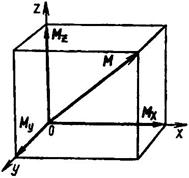 Складывая присоединенные пары, получим результирующую пару, момент которой называют главным моментом системы. Зная, что момент пары – вектор, разложим вектор главного момента по правилу параллелепипеда на три составляющие, направленные по трем взаимно перпендикулярным осям (рис. 53) Мx, Мy, и Мz. Тогда модуль главного момента можно определить по формуле