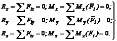 Чтобы пространственная система сил была в равновесии, необходимо соблюдение условий R0 = 0 и М = 0, т. е.