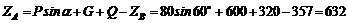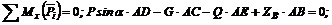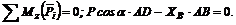 4. После решения уравнений получим: F = 250 кН; RAx = – 350 кН; RAz = 250 кН; RBx = –600 кН; RBz = 250 кН.