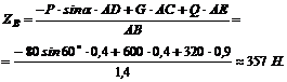 Таким образом, чтобы крышка находилась в равновесии приоткрытой под углом 60°, вес противовеса должен быть Q = Т = 103,5 H. При этом реакция шарнира А имеет две составляющие: горизонтальную ХА = 100 H и вертикальную ZA = 173,2 H, а реакция шарнира В направлена вертикально и равна ZB = 200 H.