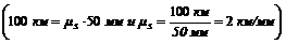 3. Время и место встречи велосипедистов наиболее просто определить графически. Расстояние между пунктами А и В, равное 100 км, изобразим на оси ординат отрезком в 50 мм (рис. 63), т. е. в масштабе ms= 2 км/мм