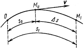 Пусть точка, закон движения которой задан функцией s = f(t), движется из положения М0 (рис. 65) в положение М1 неравномерно в течение промежутка времени t = t1 – t0. Тогда отношение