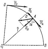 Для равнопеременного движения в задаче имеется четыре основных данных: S0 = 0 (так как за начало отсчета движения принимаем точку О); V0 = 20 м/с; t0B = 40 с и S0B = 400 м; кроме того, известен радиус закругления 01A = r = 200 м.