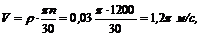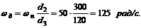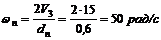 2. Находим угловую скорость шкива 2, который обеспечивает необходимую рабочую скорость зубьев пилы: