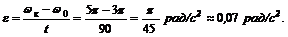 2. Находим угловое ускорение, учитывая, что изменение угловой скорости от w0 до wк происходит за t = 1,5 мин = 90 с: