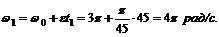5. Прежде чем найти по формуле V] = w1r скорость точек на ободе маховика в момент времени t = 45 с после начала равноускоренного вращения, необходимо найти угловую скорость маховика w1 в этот момент: