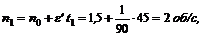 4. Найдем п1 – скорость вращения маховика через t1 = 45 с после начала равноускоренного вращения: