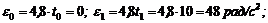 5. Найдем угловое ускорение в начале движения (t0=0), в конце 10- й (t1= 10 с) и 20-й секунд (t2 = 20 с):