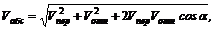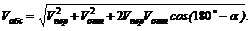 Для определения модуля абсолютной скорости можно использовать теорему косинусов: