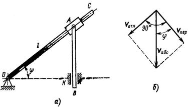 относительного поступательного вдоль кулисы ОС; вектор относительной скорости voth направлен вдоль кулисы (рис. 75, б);
