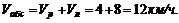 – направлена вдоль прямой АС и складывается из собственной скорости