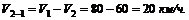 = – 20 км/ч, т. е. относительно первого второй автомобиль двигается со скоростью 20 км/ч, но в обратную сторону.