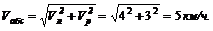 2. Так как в данном случае переносное и относительное движения направлены в одну и ту же сторону, то скорость лодки относительно берегов (абсолютная скорость):