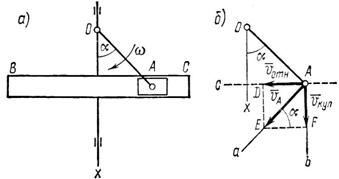 б) относительного движения точки А вместе с камнем, движущимся возвратно-поступательно в прорези кулисы в направлении, перпендикулярном к оси х.