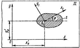 Рассмотрим движение фигуры S (рис. 82) в плоскости II относительно неподвижно связанных с этой плоскостью осей хОу. Пусть оси x1O1y1 будут связаны с движущейся фигурой S – это подвижные оси.