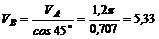 Угол между VВ и VA равен 45°, поэтому