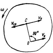 где w – угловая скорость фигуры (рис. 85). Нетрудно убедиться, что абсолютная скорость этой точки будет равна нулю, так как направления векторов относительной скорости Vco и переносной V0 противоположны, а их модули равны.